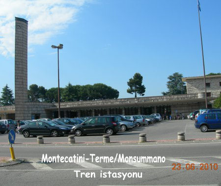 Tren daha uygundur ( hem fiyat hem zamanlama ) .Floransa dan ana istasyondan Santa Maria Novella dan kalkar.Yolculuk yaklaşık 40 – 50 dk .sürer.Trenler temiz sayılır.Ücret : Tek yön ve tüm Toskana bölgesi için 3.5 € ' dur. ( 2010 ). Bilet birkaç gün için geçerli - tek yön kullanımda !.Sıkıntıya girmemek için dönüş biletinizide istasyondan temin edin!. Floransa'dan son tren 22_20 dolayında idi ( Haz.2010 ).Son durak : Montecatini-Terme / Monsummano - ” Park Hotel Le Sorgenti “ yanıdır.Bundan başka küçük bir istasyon daha vardır ama Monsummano en merkezi konumundadır.