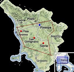 Bu bölgede Floransa' yı ( Firenze - Florence ) merkez olarak aldığımızda bölge kentlerinin birbirlerine olan uzaklıkları ile diğer İtalyan şehirlerinin Floransa'ya olan mesafelerini hatırlatalım..