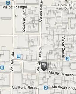 Cuisine Tuscan - açık: Tues-Sun 12:30-2:30pm ve 7:30-10:30pm -bölge : Via Proconsolo, Piazza Della Signoria yakın - ücret : Primi 4€-9€ ($5.20-$12); secondi 9€-15€ ($12-$20); fixed-price menu without wine 11€ ($14)