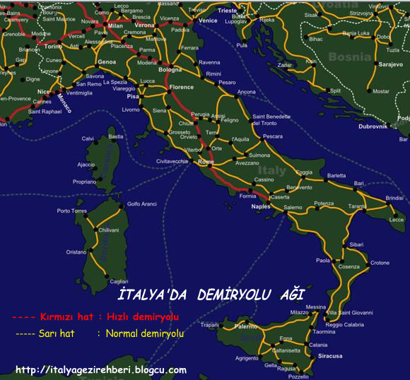 Belki sizler Roma ' dan ( yada başka bir İtalya kentinden ) tren yada otobüs yolculuğu yaparak İtalya ' yı turlayalım diyebilirsiniz....