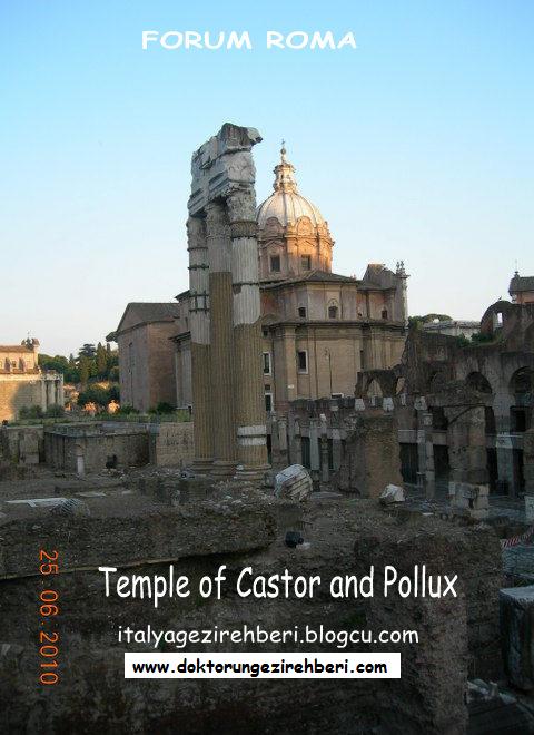 Tempio dei Castori ( Kastor ve Polluks Tapınağı ) ; Bir başka tapınaktır. Regillus Irmağı Savaşı (M.Ö. 495) ’nda elde edilen zaferdeki paylarından ötürü Zues ile Leda’nın ikiz oğulları “ Kastor ve Polluks ” adına inşa edilmiştir.