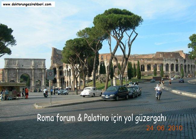 Kolesyum alanında iken “ Costantinus Kemeri” ‘ ni arkanıza alıp , kesme taşlardan yapılı, geniş antik yola – Via di S. Gregorio - girip biraz yürüyün. Yolun sağındaki girişten ; ücret karşılığı ( Roma pass card için gerekmeyecek ! ) Roma Forum & Palatino ‘ ya bilet alın.Kolesyum bileti olanlar ayrıca ödeme yapmayacaklar ! Forum ‘ a Via dei fori imperiali ‘ den de girebiliriz.