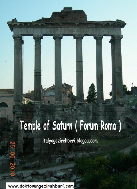 Forum’un batı ucuna yaklaştıkça sütunlar gözümüze takılacaktır. 8 sütun hâlinde yükselen Tempio di Saturno ( Satürn Tapınağı ) bunlardan biridir ; Tarihte tanrı Satürn’e ithaf edilmiştir ve imparatoluğun altın ve gümüş hazinelerinin saklandığı yerdir.