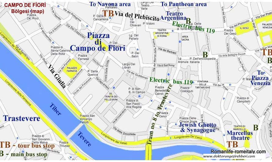 Navona meydanının güneyinde yer alan gezi bölgemiz Campo de Fiori ‘ dir.