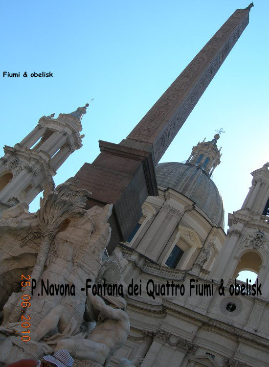 Rio de la Plata, Tuna, Ganj ve Nil nehirlerini simgeledeğine inanılan bu heykel & dikilitaş ; 1651 yılından bu yana Piazza Navona’yı süslemektedir. Meydanda bulunan bir diğer görülesi yapı ise 17. yüzyıl tarihli Sant'Agnese in Agone bazilika kilisesidir.