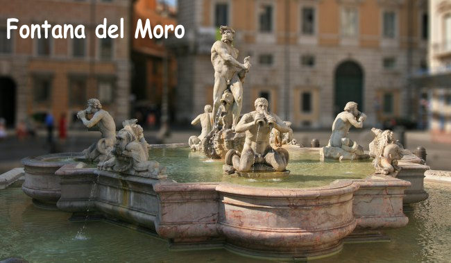 Gian Lorenzo Bernini’nin Fontana dei Quattro Fiumi ( Dört Nehir Çeşmesi ) ’ si, bu meydanın ortasında yükselen önemli bir mimari şaheserdir ( ayrıca iki çeşme daha var. Neptün ve Moro ).