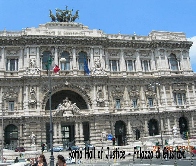 Kaleden çıkıp Tiber nehri yanında “ Lungotevere Castello ” güzergahında yürürsek ( doğuya ) hemen yakınında Roma Adalet binasını ( anayasa –yargıtay )görürüz. Burası Plazza dei Tribunali ( Palazzo di Guistizia ) meydanı olup,karşısında yer alan Punto Umberto I köprüsünden Tiberin karşısına ( Roma merkeze ) geçeriz..