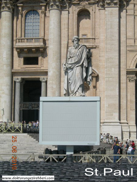 ** Vatikan meydanına ( Piazza San Pietro ) girdiğinizde sağ ve sol köşelerede 2 heykel görürsünüz. Sağ taraftaki Saint Paul , soldaki ise Saint Peter ‘ dir.Her ikisi de Hıristiyanlık aleminde Aziz olarak önemli şahsiyetleriyle tarihe geçmişlerdir.