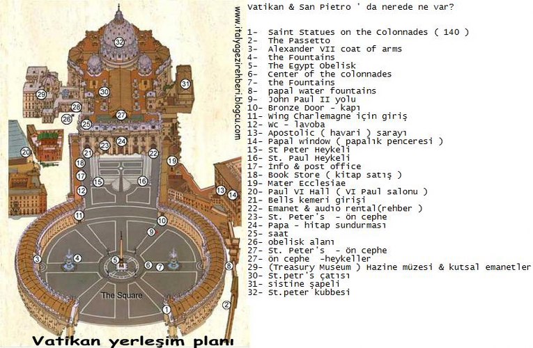 San Pietro meydanı ve Bazilika 'da yer alan tüm heykel ve yapıların üstüne tıklandığıda detayları veren ( görsel ) resmi web site adresi :