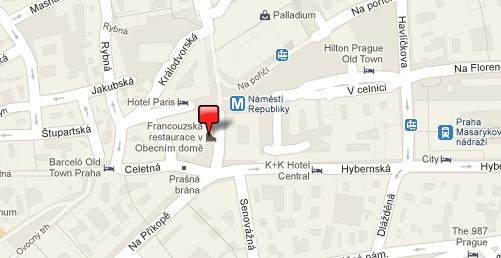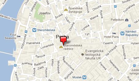 Ulaşım : Metro line A -> Staromestska yada Namesti Republiky (Metro line B) , tram.no. 17, 18, 53 (Staromestska )